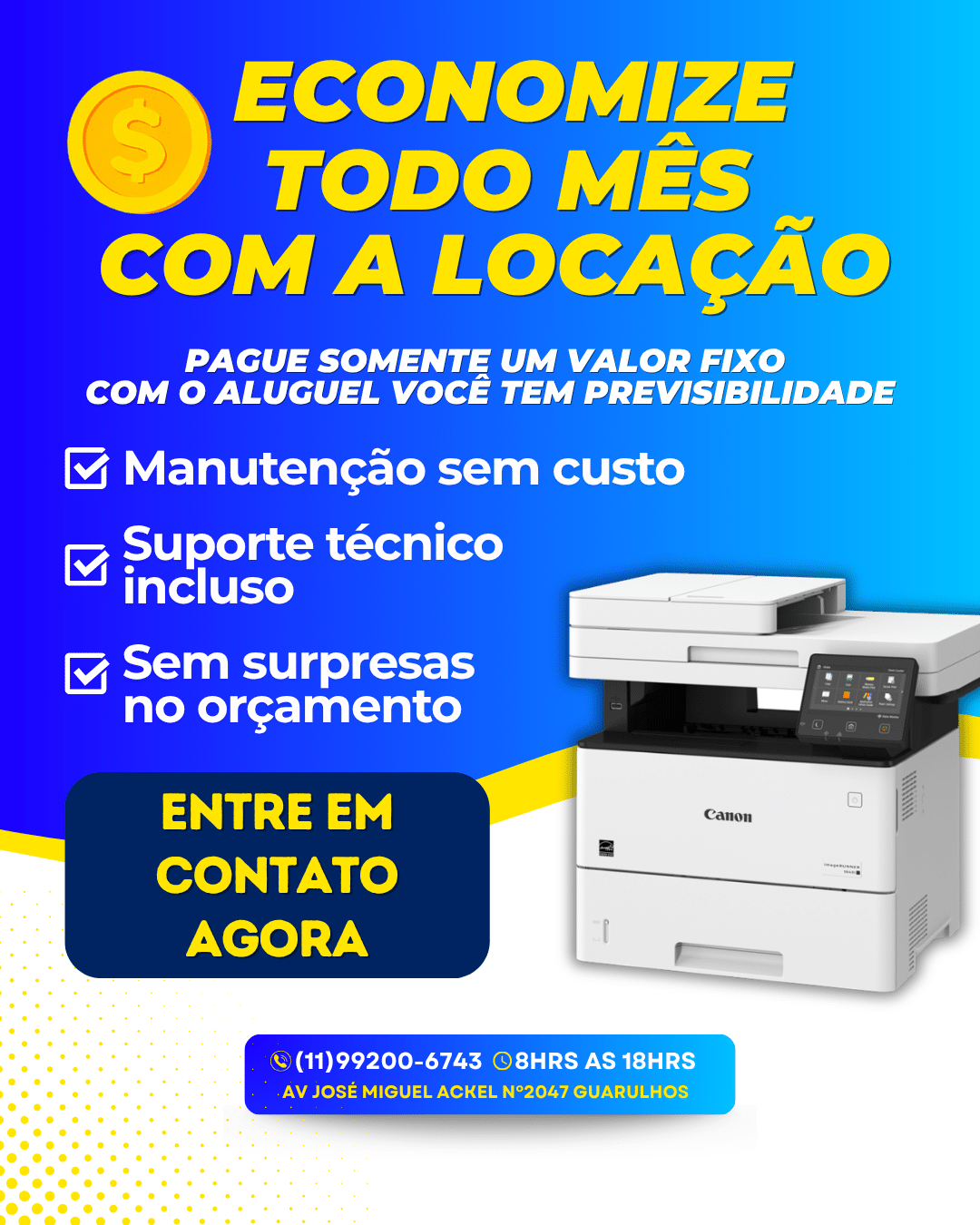 Conte com a gente para encontrar a **impressora ideal para o seu negócio em Guarulhos**. Simplifique sua rotina e otimize seus custos com nossas soluções personalizadas de aluguel. Entre em contato conosco para obter mais informações e solicite um orçamento sem compromisso hoje mesmo!